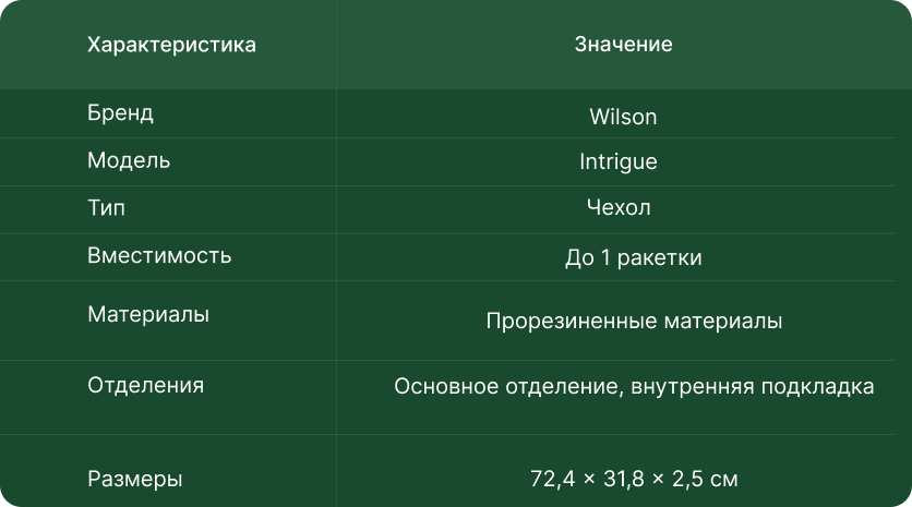 Теннисный чехол Wilson Intrigue — надёжный и продуманный аксессуар для игроков, которым важно организованное хранение инвентаря, стиль и комфорт в дороге.