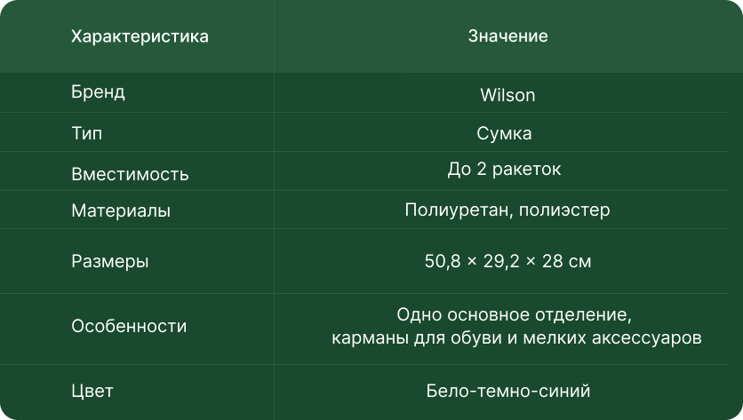 Теннисная сумка Wilson в стиле ретро — надёжный и продуманный аксессуар для игроков, которым важно организованное хранение инвентаря, стиль и комфорт в дороге.