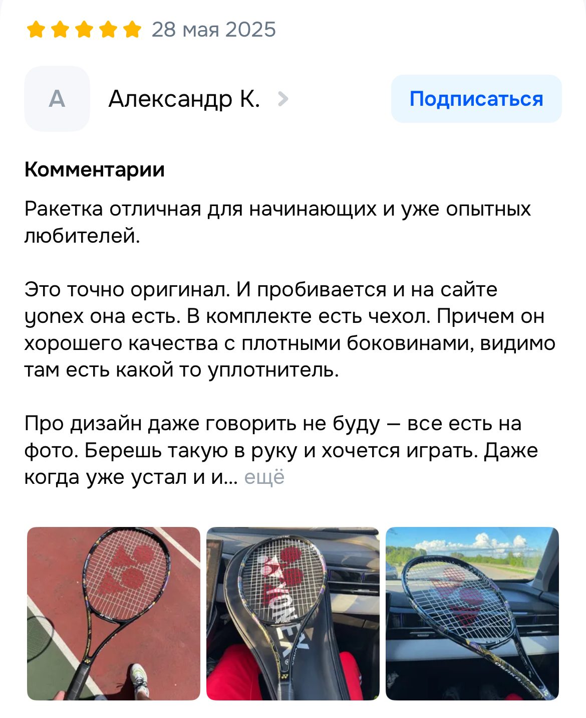 Если вы ищете универсальность, узнаваемый стиль и точность — эта модель может стать отличным выбором. Купить теннисную ракетку Yonex можно в магазине TOP COURT с гарантией оригинальности и быстрой доставкой по РФ.
