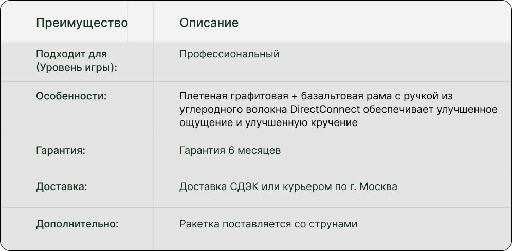 Опираясь на почти 20 лет доминирования, ракетки Wilson Blade по-прежнему остаются предпочтительным выбором для заядлых конкурентов, ищущих максимальный контроль, ощущение и стабильность. Более легкая и маневренная ракетка для легкого качения, Blade 100L V9 улучшает выдающуюся конструкцию V8 за счет заточки реакций на резкос и повышения стабильности. Благодаря новой матовой отделке Emerald Night Green, эта ракетка дает игрокам оптимальное сочетание контроля, ощущения и силы. Его плетеная графитовая + базальтовая рама с ручкой из углеродного волокна DirectConnect обеспечивает улучшенное ощущение и улучшенную кручение.