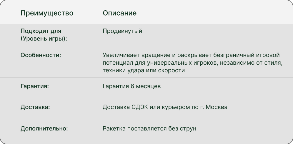 Голова размером 100 кв. дюймов создает идеальный баланс между мощностью и контролем, делая ракетку универсальным инструментом для любой игровой ситуации. Yonex Vcore 100 — это выбор игроков, которые ценят японское качество, передовые технологии и готовы показывать свой лучший теннис в каждом матче.