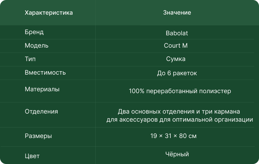 Эффективная и удобная, эта функциональная и сдержанная теннисная сумка вмещает до шести ракеток и все необходимое оборудование для приятного времяпрепровождения на корте.