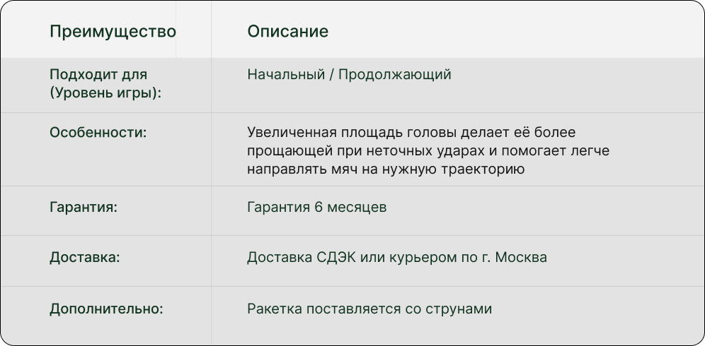 Увеличенная площадь головы (105 кв. дюймов) делает её более прощающей при неточных ударах и помогает легче направлять мяч на нужную траекторию. Вес в 280 грамм и баланс 325 мм обеспечивают удобное ведение ракетки в движении, что особенно важно для игроков, совершенствующих свою технику. Струнная формула 16x19 даёт оптимальное сочетание контроля и вращения, а материал рамы — композит на основе графита — отвечает за надёжность и лёгкость.