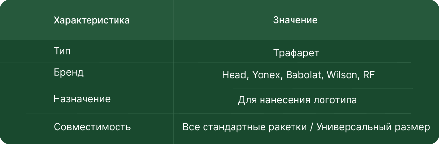 Добавьте индивидуальности и фирменного стиля своей ракетке. Трафареты для струн позволяют легко нанести логотип любимого бренда на струны. Трафареты имеют чёткий контур и подойдут для большинства теннисных ракеток.