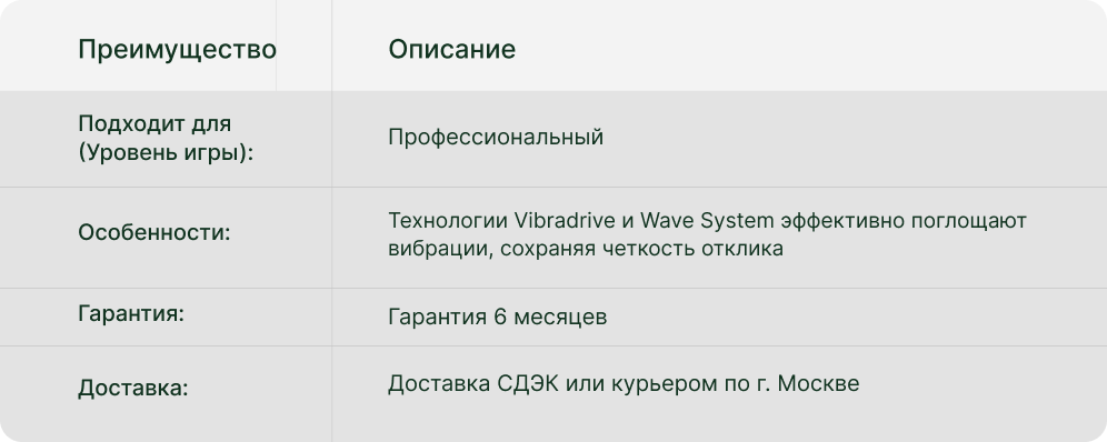 Новая версия сохранила всю мощь оригинальной XPLO, но стала доступнее для более широкого круга игроков. Геометрическая форма и баланс 26.5 см обеспечивают максимальную энергию удара, а усовершенствованные технологии гашения вибраций делают игру комфортной даже при длительных нагрузках.