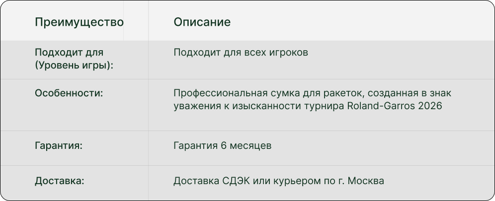 Когда вы стремитесь к величию на грунте, ваша сумка несет в себе это наследие. Wilson Roland-Garros Super Tour 9 Pack — это идеальное сочетание профессиональной функциональности, надежной защиты и неповторимого стиля легендарного турнира.