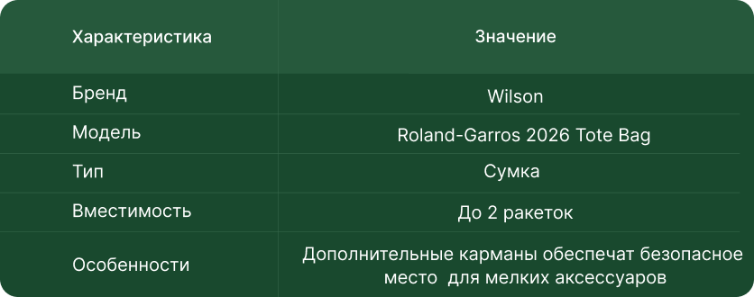Wilson Roland-Garros 2026 Tote Bag — это официальный аксессуар турнира, который позволит вам прикоснуться к атмосфере "Большого шлема" во время каждой игры.