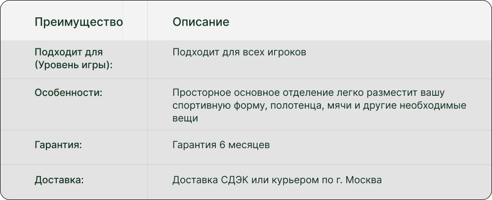 Сумка оснащена специальным отделением, которое надежно вмещает до двух теннисных ракеток, защищая их от повреждений и ударов. Просторное основное отделение легко разместит вашу спортивную форму, полотенца, мячи и другие необходимые вещи. Отдельный карман для обуви позволяет гигиенично хранить обувь отдельно от остальной экипировки, предотвращая распространение запахов и загрязнений.