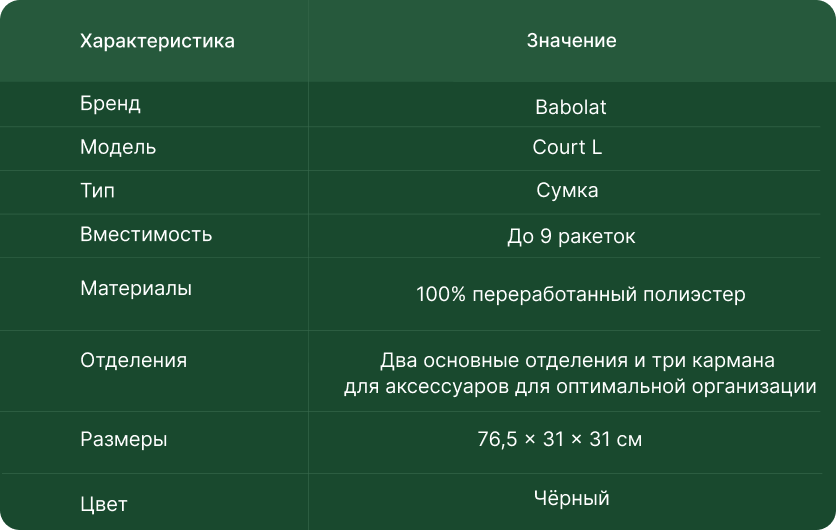 Независимо от того, занимаетесь ли вы, участвуете в соревновательной игре или просто наслаждаетесь спортом с друзьями, сумка COURT L обеспечивает удобство и функциональность.