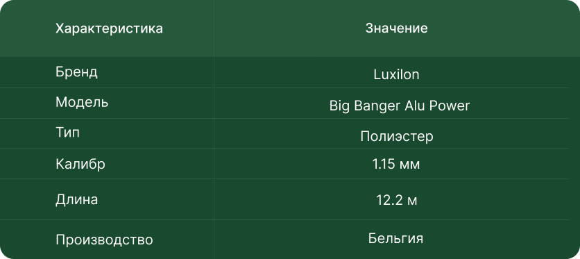 В основе струн — уникальный полиэфирный материал Luxilon с алюминием, обеспечивающий высокую стабильность натяжения, уверенное чувство мяча и долговечность. Тонкий калибр 1.15 мм даёт улучшенный спин и ощущения, а длина 12.2 м подходит для одной натяжки.