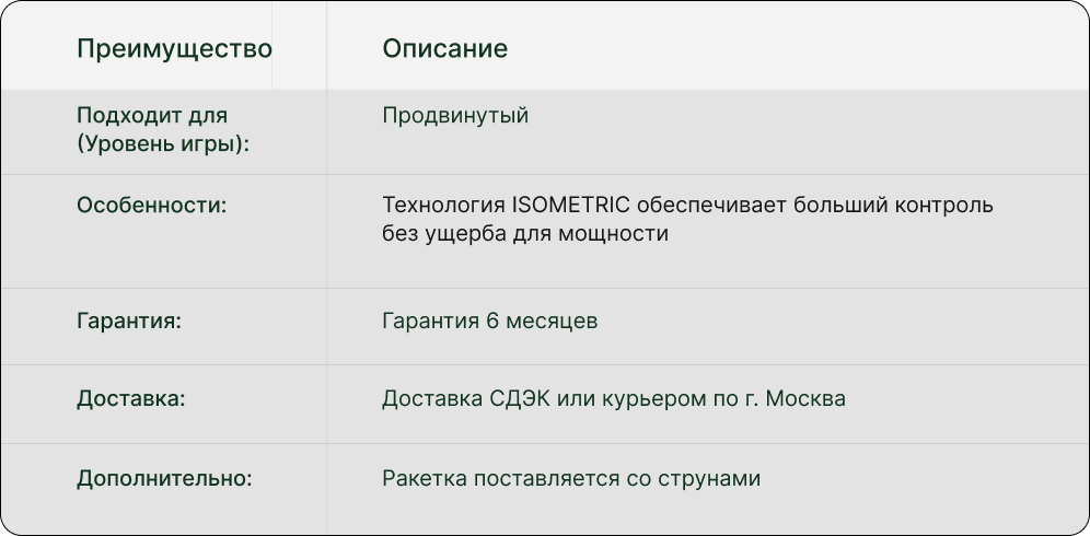 Используемые материалы, такие как HM GRAPHITE и 2G-Namd™ Flex Force, обеспечивают не только прочность, но и значительное снижение вибраций, повышая комфорт при каждом ударе. Кроме того, технология ISOMETRIC™, разработанная более 30 лет назад, увеличивает сладкое пятно на 7% по сравнению с традиционными ракетками.
