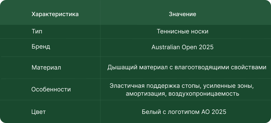 Аксессуары — это детали, которые делают игру комфортнее, чище и точнее. Теннисные носки Australian Open 2025 разработаны для обеспечения комфорта, поддержки и долговечности во время интенсивных нагрузок на корте.