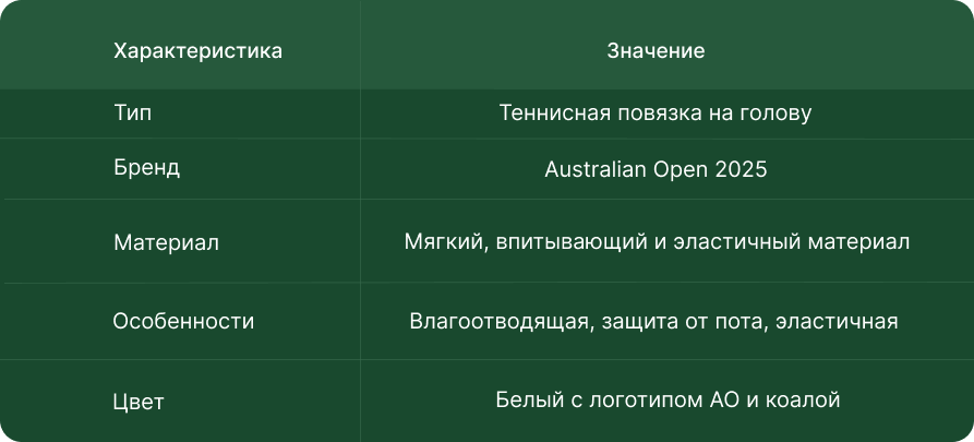Аксессуары — это детали, которые делают игру комфортнее, чище и точнее. Теннисная повязка на голову Australian Open 2025 разработана для того, чтобы отводить влагу и обеспечивать комфорт во время матчей и тренировок.
