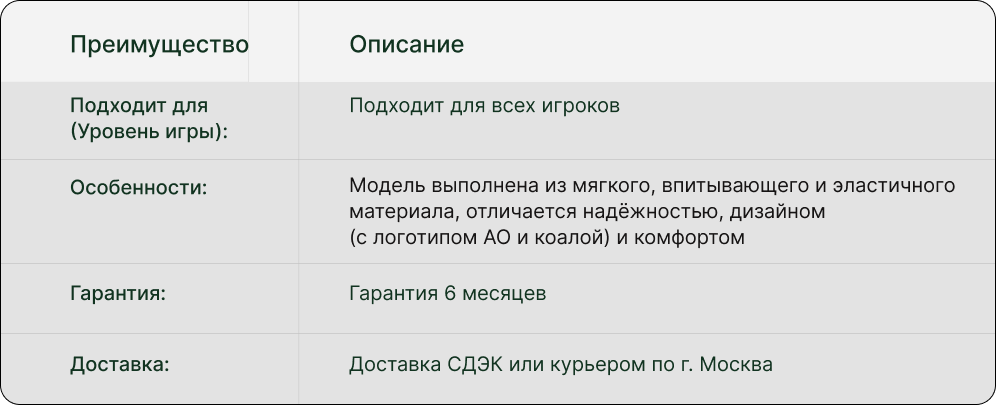 Модель выполнена из мягкого, впитывающего и эластичного материала, отличается надёжностью, дизайном (с логотипом AO и коалой) и комфортом. Идеально подходит для любителей и профессионалов.