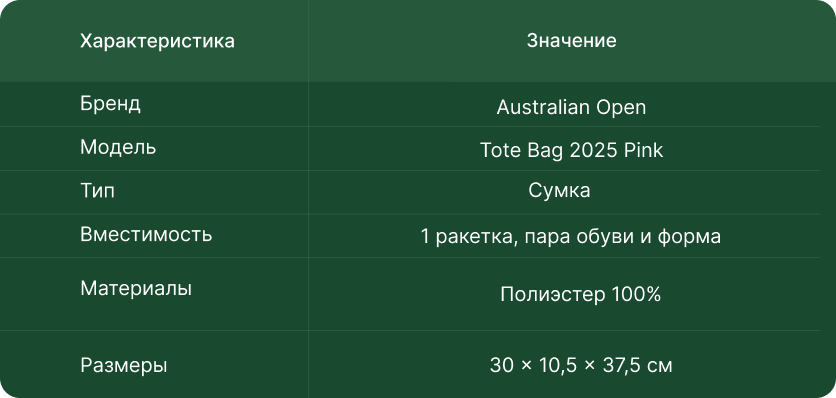Теннисная сумка Australian Open Tote Bag 2025 Pink — надёжный и продуманный аксессуар для игроков, которым важно организованное хранение инвентаря, стиль и комфорт в дороге.