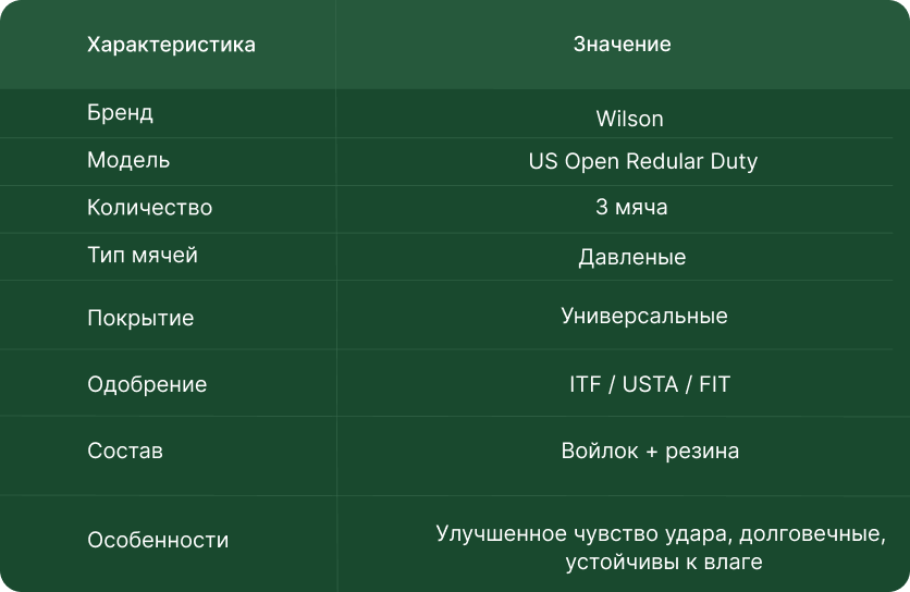 Купить теннисные мячи Wilson US Open Regular Duty можно в упаковке по 3 мяча в банке. Идеальный выбор для тех, кто ценит стабильный отскок, надёжность и фирменное качество.