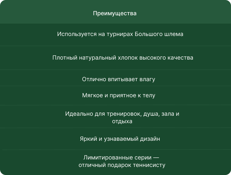 Идеальный аксессуар для тех, кто ценит не только функциональность, но и традиции большого тенниса. Полотенце станет стильным дополнением экипировки как на корте, так и за его пределами.